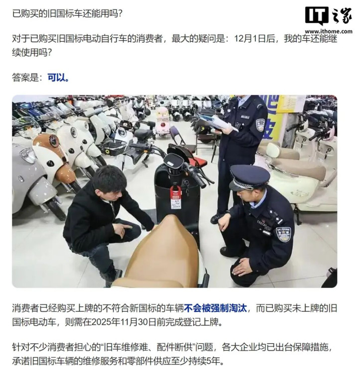 各电动自行车指定认证机构对依据旧版本标准出具的有效CCC认证证书,于2025年12月1日全部予以注销;